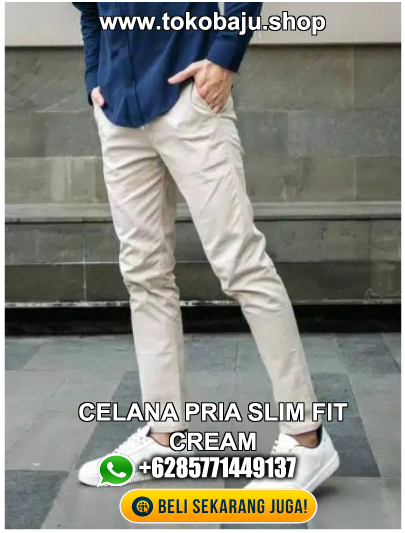 Celana Pria Slim Fit Cream