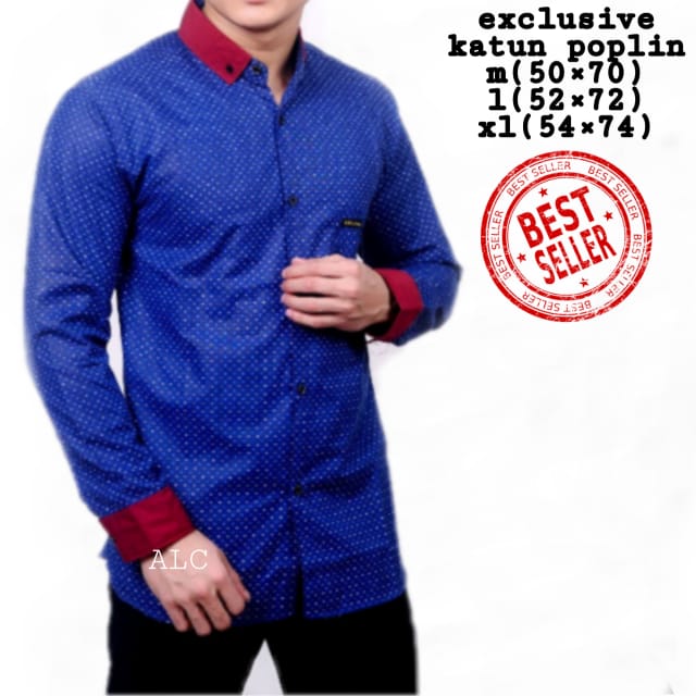 Baju Pria Lengan Panjang Exclusive Katun Poplin Biru
