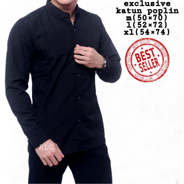 Baju Pria Lengan Panjang Exclusive Katun Poplin Hitam