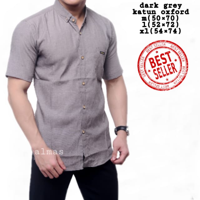 Baju Pria Lengan Pendek Exclusive Katun Poplin Abu Abu