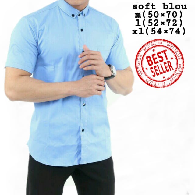 Baju Pria Lengan Pendek Soft Blou Biru Muda